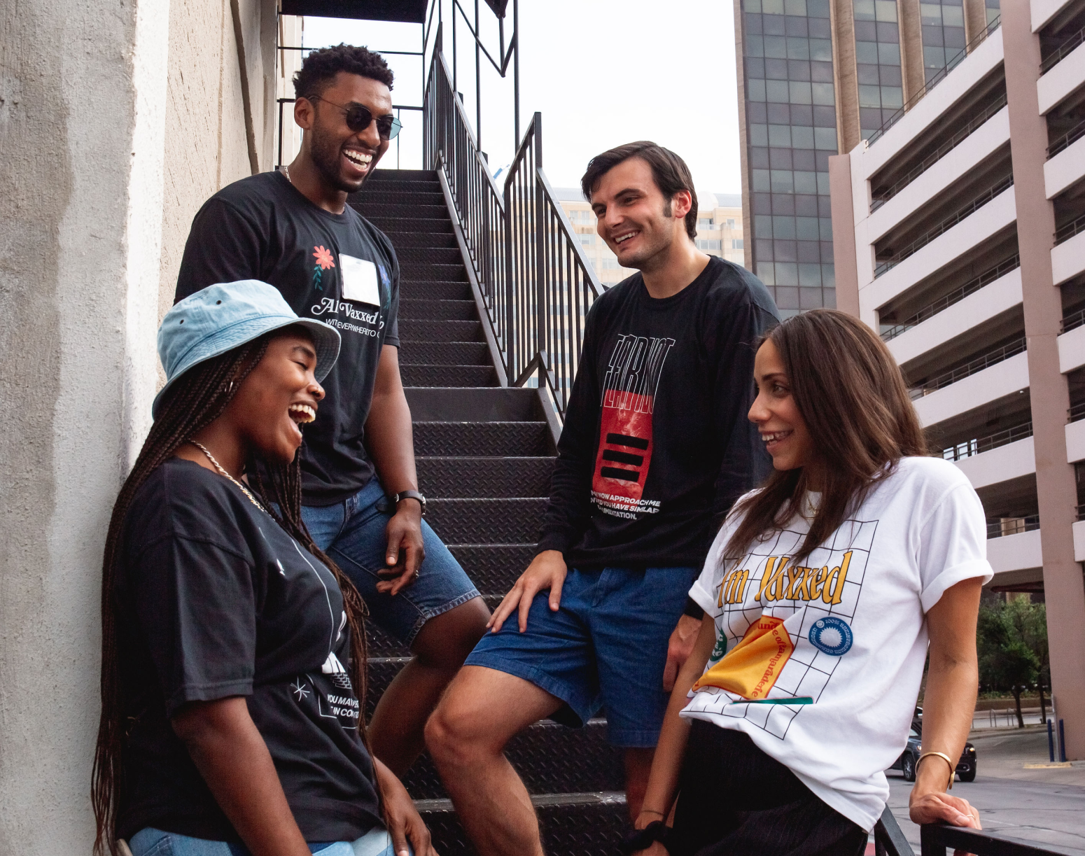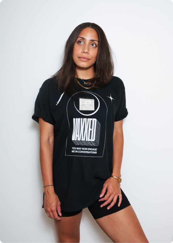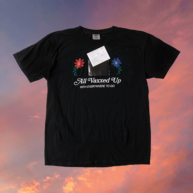 In the first moments that could be described as "post-pandemic", things were reopening, slowly. You had to bring vaccine cards everywhere. We wondered if it was ok to approach each other. We decided the best way through was to put all our cards on the table...or, more accurately, on our chests. We created a line of merch with vinyl pockets on them so you could easily carry your vaccine cards and not encounter uncertainty. In a time when everyone felt a little vulnerable we made being vaccinated a point of pride.