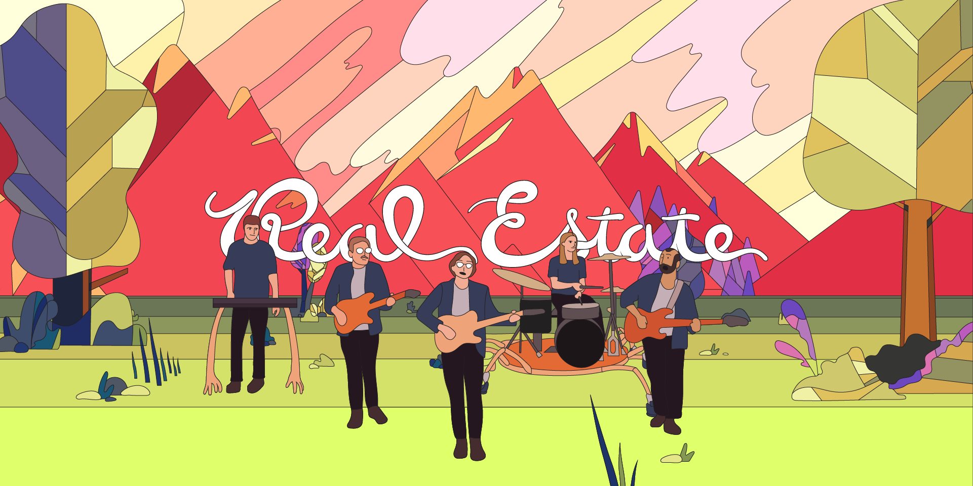Over the last few years, we have worked with the band Real Estate to develop them into a better-known commodity. We’ve helped them with everything from videos, interactive experiences, stage design, press photos, and even product collaborations with other brands.